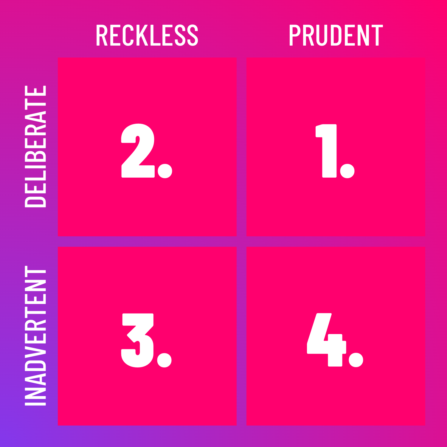 - Prudent & Inadvertent: "Now that we're finished, we know how we should have built it." (Inevitable β you learn while coding).